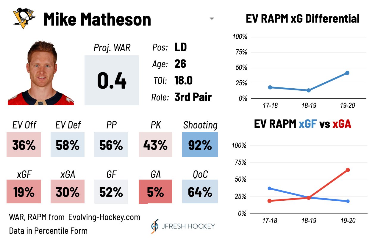 Jfresh On Twitter Mike Matheson Reportedly Heading To Pittsburgh Is A Bottom Pairing Defenceman With Well Below Average Impacts At Both Ends Of The Ice But Hey Apparently He S Got A Nice Shot